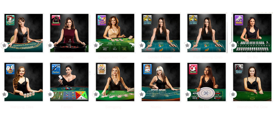 Live Baccarat, Lucky Baccarat, Roulette, Dragon Tiger, Sicbo.